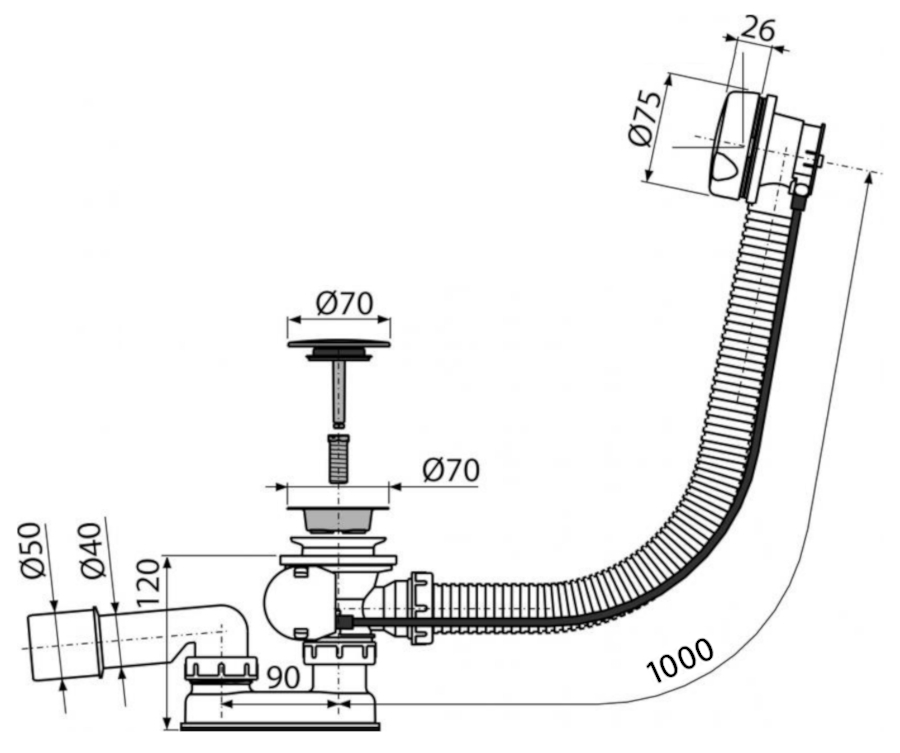 Cechy:- Długość syfonu wannowego 100 cm