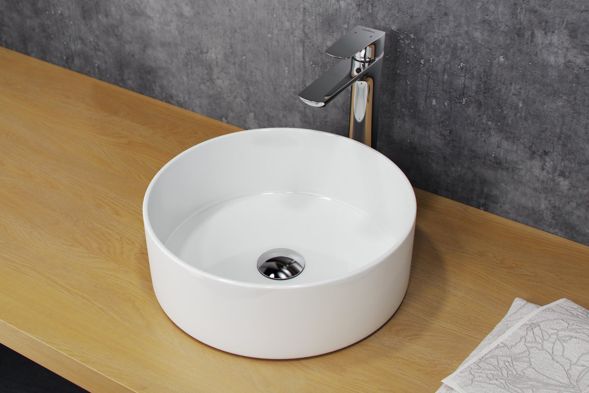 Ovia umywalka ceramiczna, nablatowa. Świetnie pasuje do minimalistycznych wnętrz, ale równie dobrze ozdobi łazienkę tradycyjną i klasyczną.