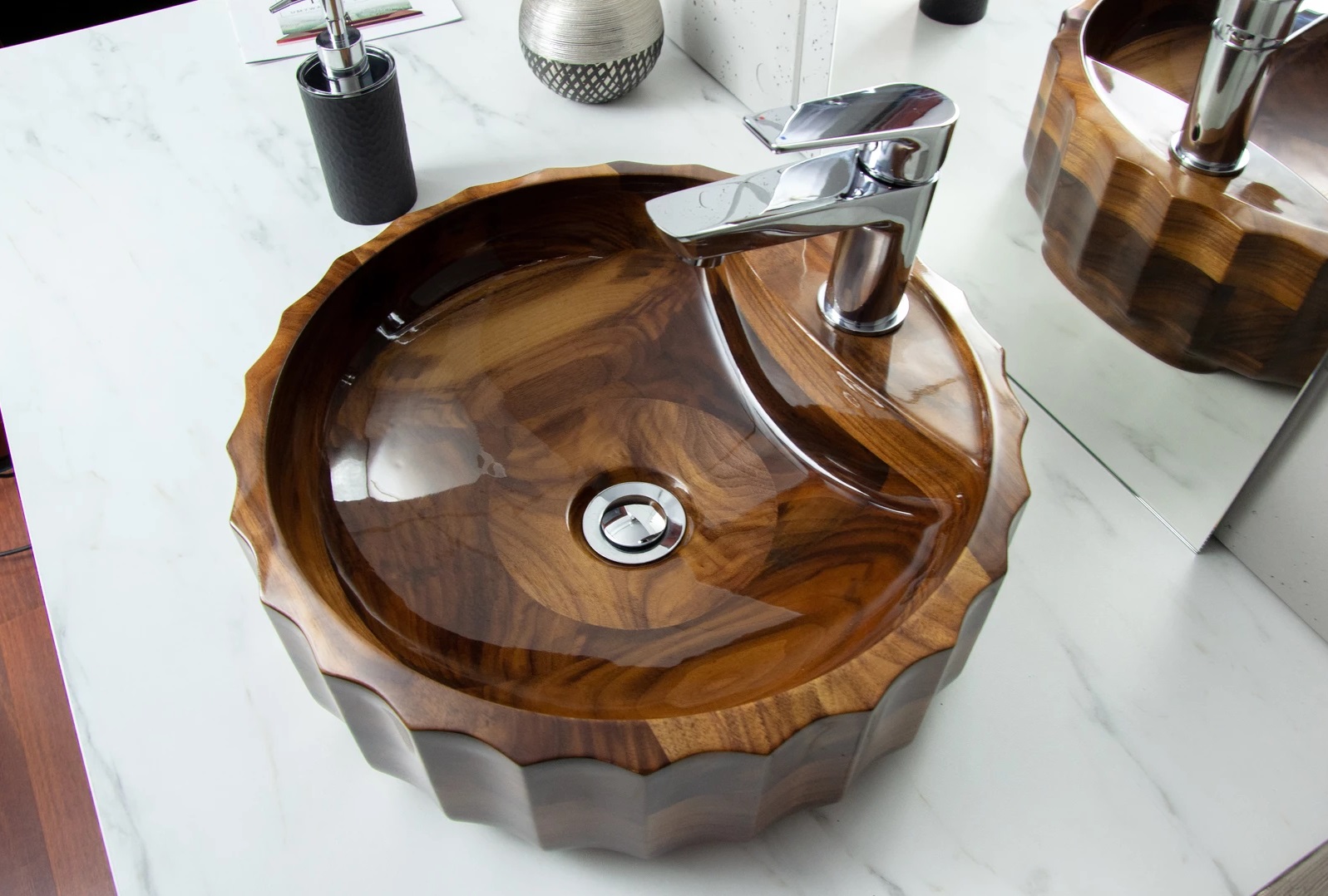 Istnieje możliwość zamówienia umywalki z dowolnego rodzaju drewna z wzornika.