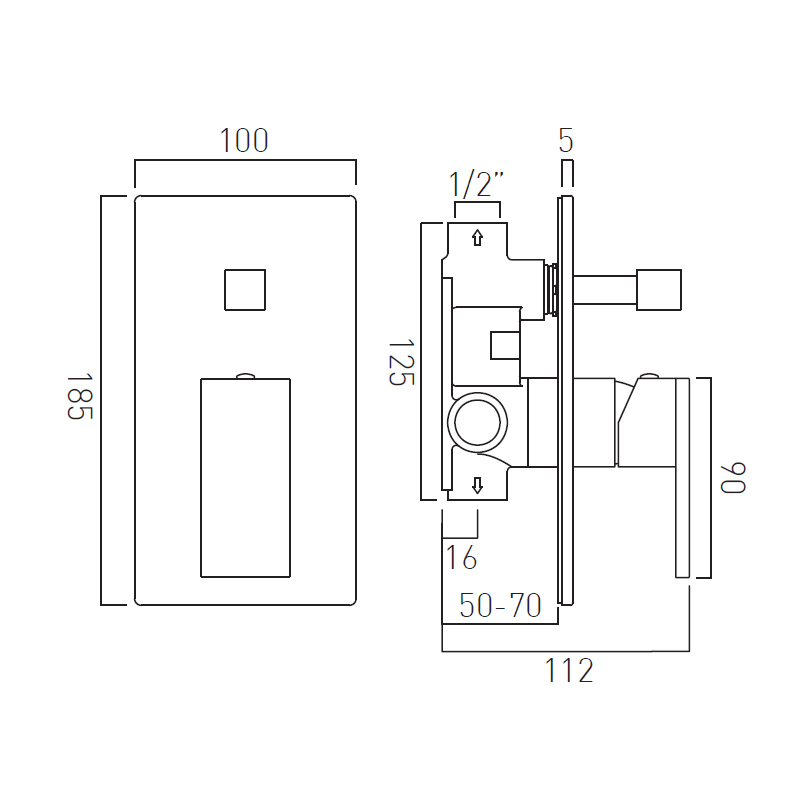 montaż podtynkowy, głębokość: 50-70 mm