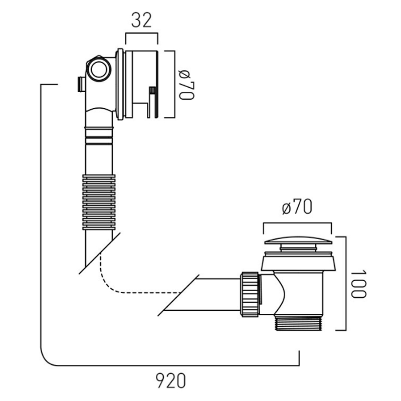 Vado Odpływ wannowy bez syfonu, z przelewem i funkcją napełniania przez przelew, z korkiem klik-klak Złoty szczotkowany IND-81389/RO-BRG