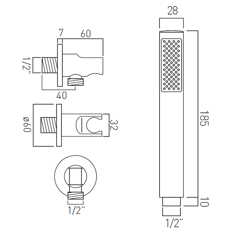 zestaw prysznicowy: słuchawka, wąż prysznicowy, uchwyt