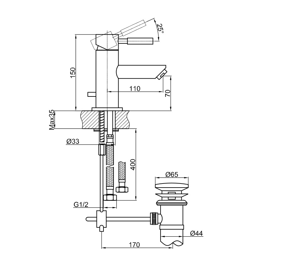 Wysokość wylewki: 70 mm