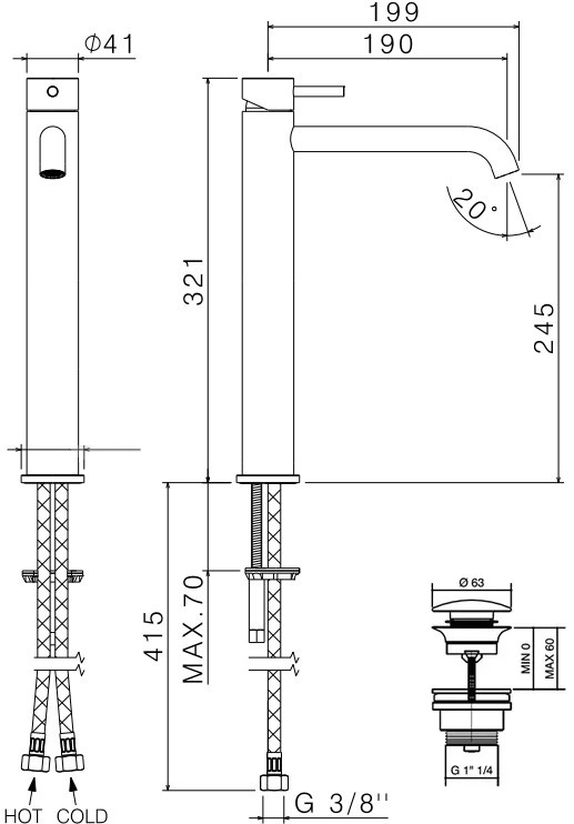 Vema Tiber Steel Bateria umywalkowa wysoka z korkiem klik-klak Stal nierdzewna V17021K