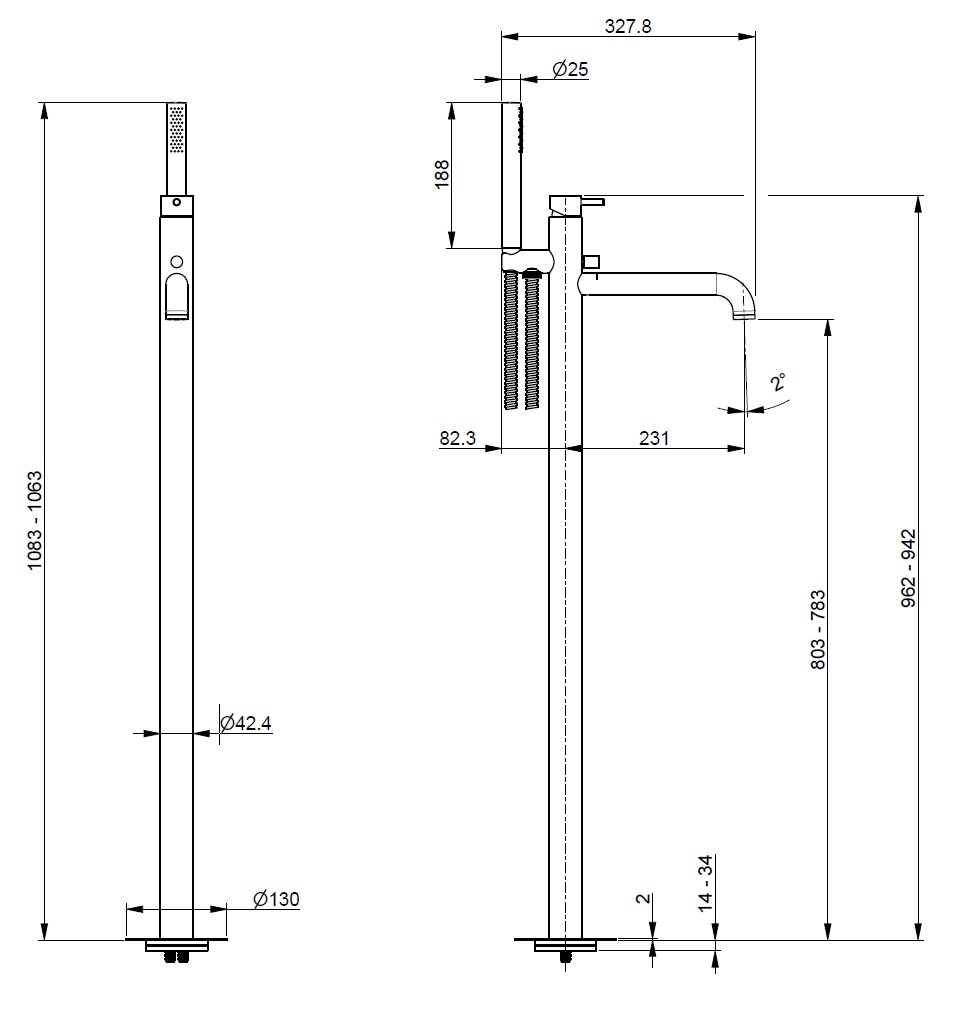 Vema Tiber Steel Bateria wannowa wolnostojąca stal nierdzewna V17195