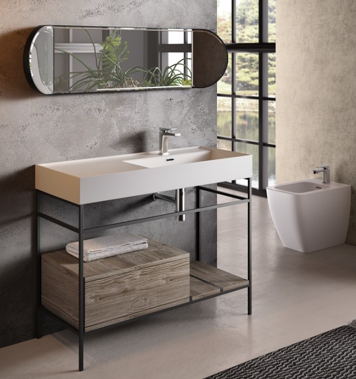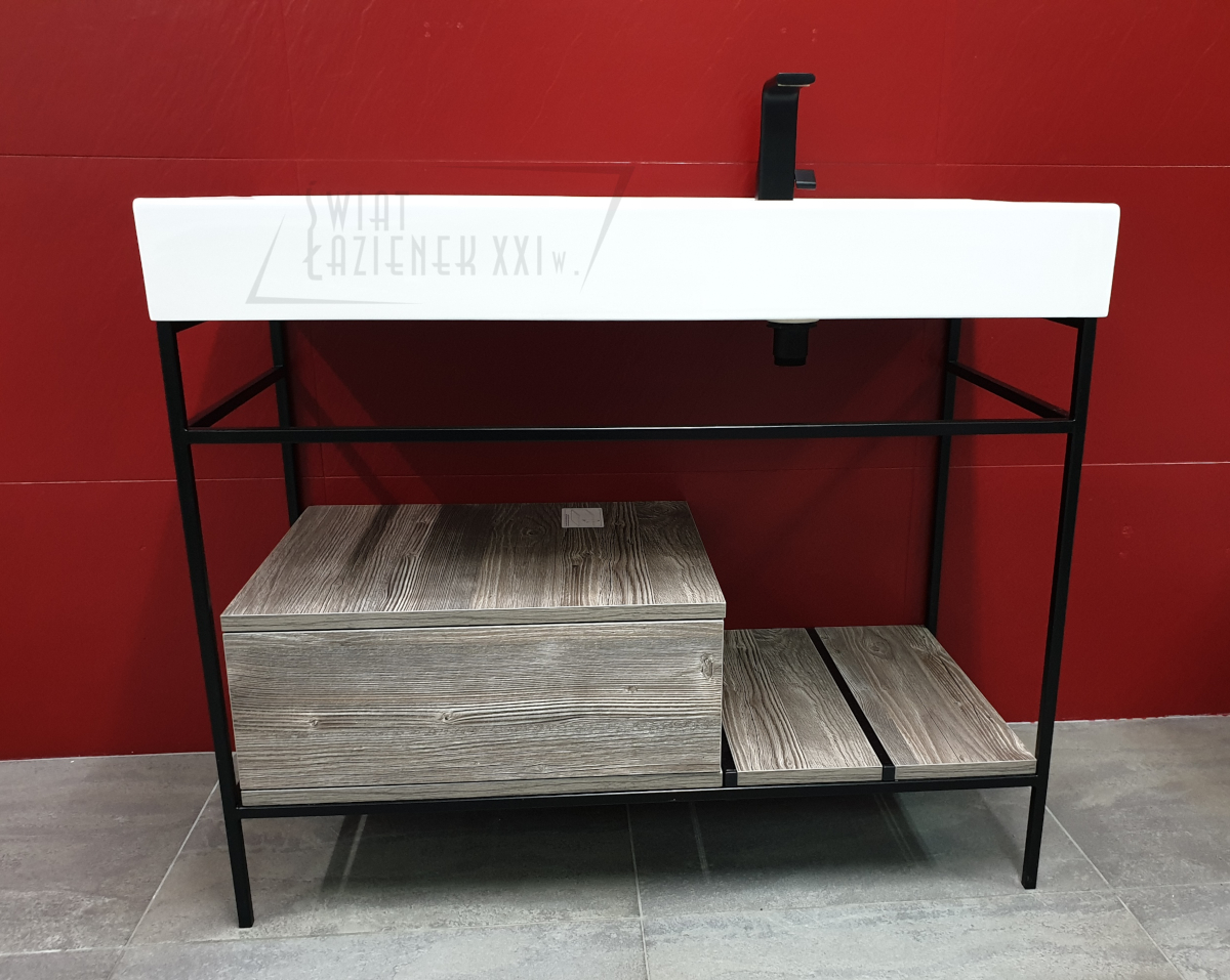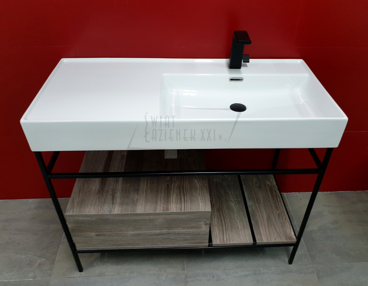 Hidra Faster Kiub Umywalka prawa ze stelażem podumywalkowym 100 cm Czarny/Dąb rustykalny KSCP100.111+KI100SX.001