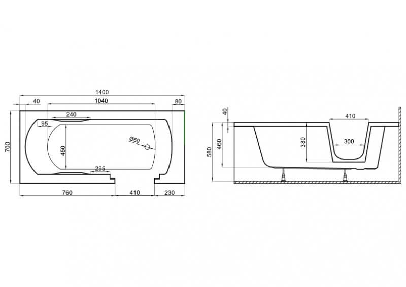 Szczelne boczne drzwiczki ułatwiają samodzielne korzystanie z wanny prostokątnej podczas kąpieli przez osoby starsze i niepełnosprawne.