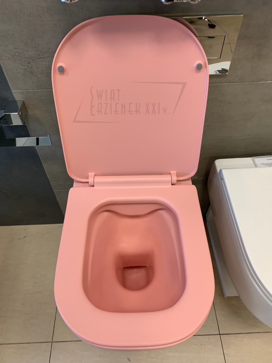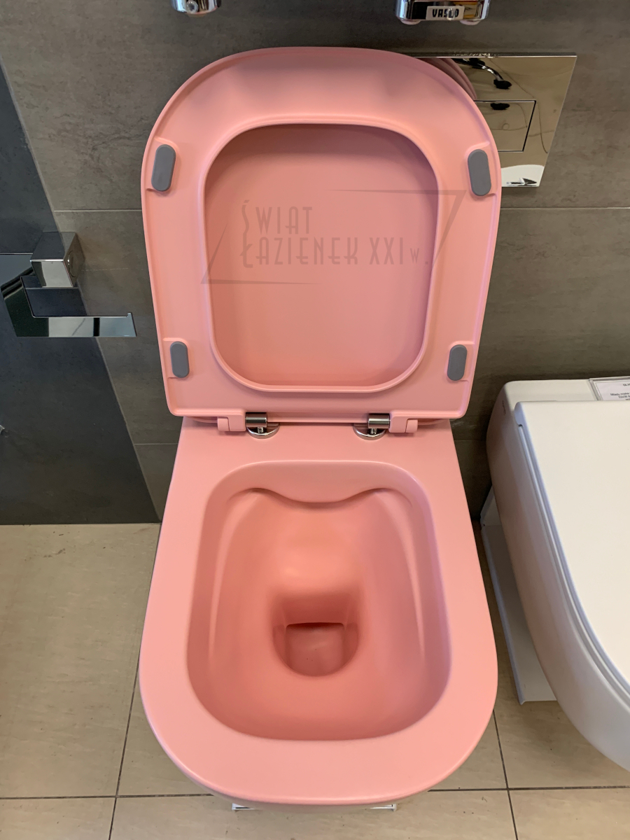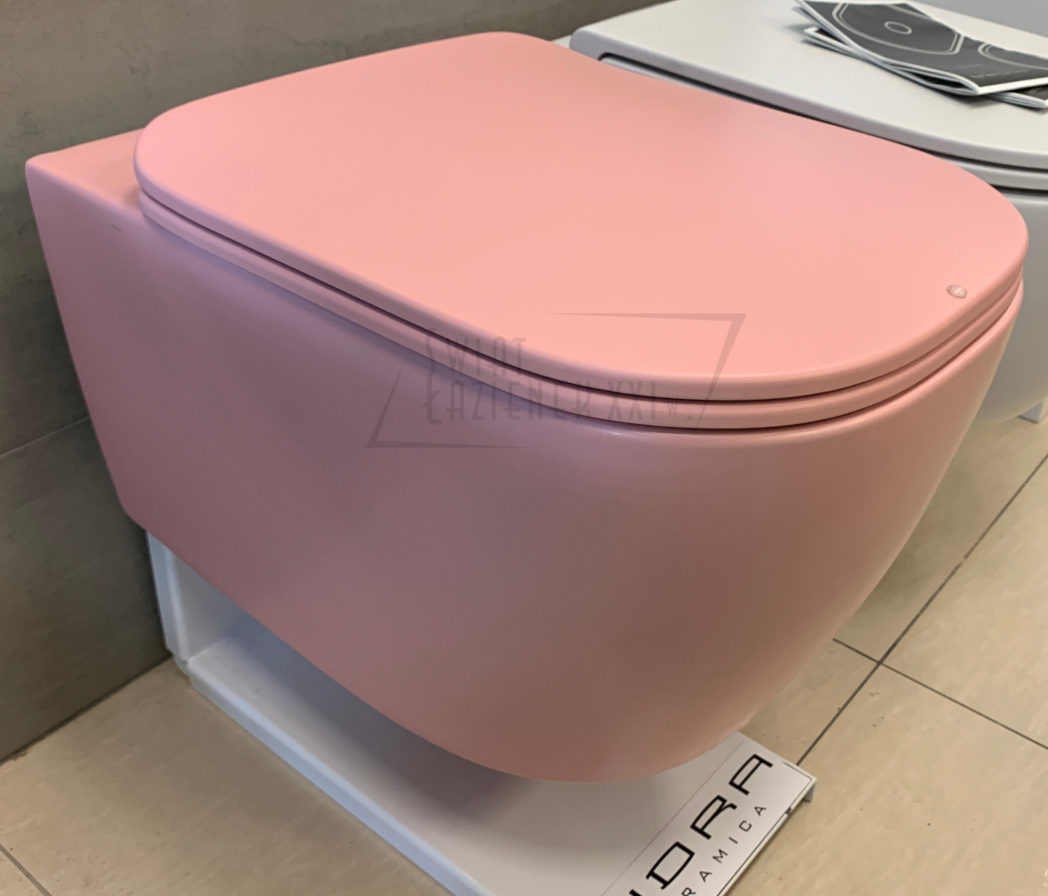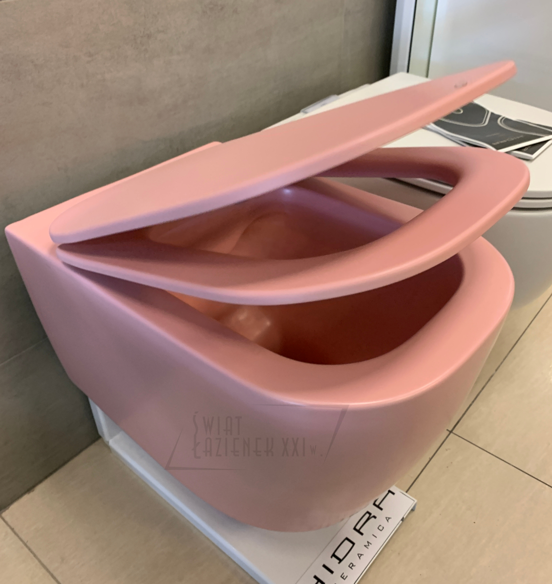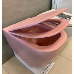 Hidra Faster Miska WC wisząca bez kołnierza 53x36,5 cm z deską wolnoopadającą Różowy mat FAWR20.097+FAZQ.097