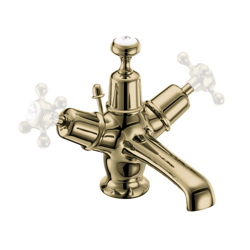 Burlington Bateria umywalkowa jednootworowa bez pokręteł i podstawki z kpl. odpływowym Złotym/Gold T12-QTGOLD