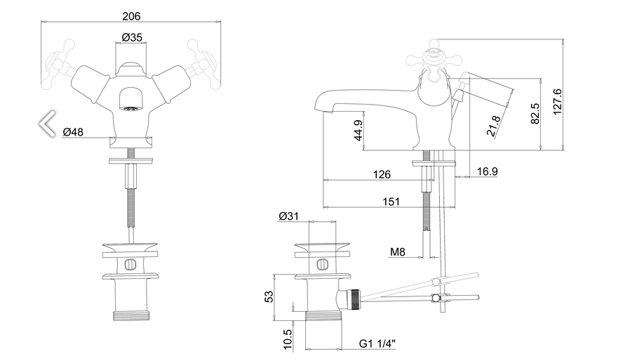 Burlington Bateria umywalkowa jednootworowa z głowicą ceramiczną Gold T12-QTGOLD