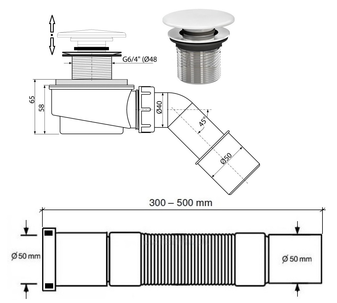 Cena dotyczy syfonu z korkiem Click-Clack i przyłączem harmonijkowym