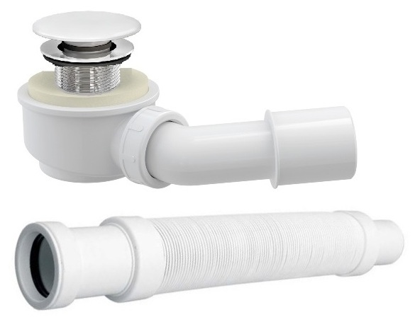 Syfon do wanny bez przelewu, korek Click-Clack biały połysk konglomerat K122WG W MAGAZYNIE!!
