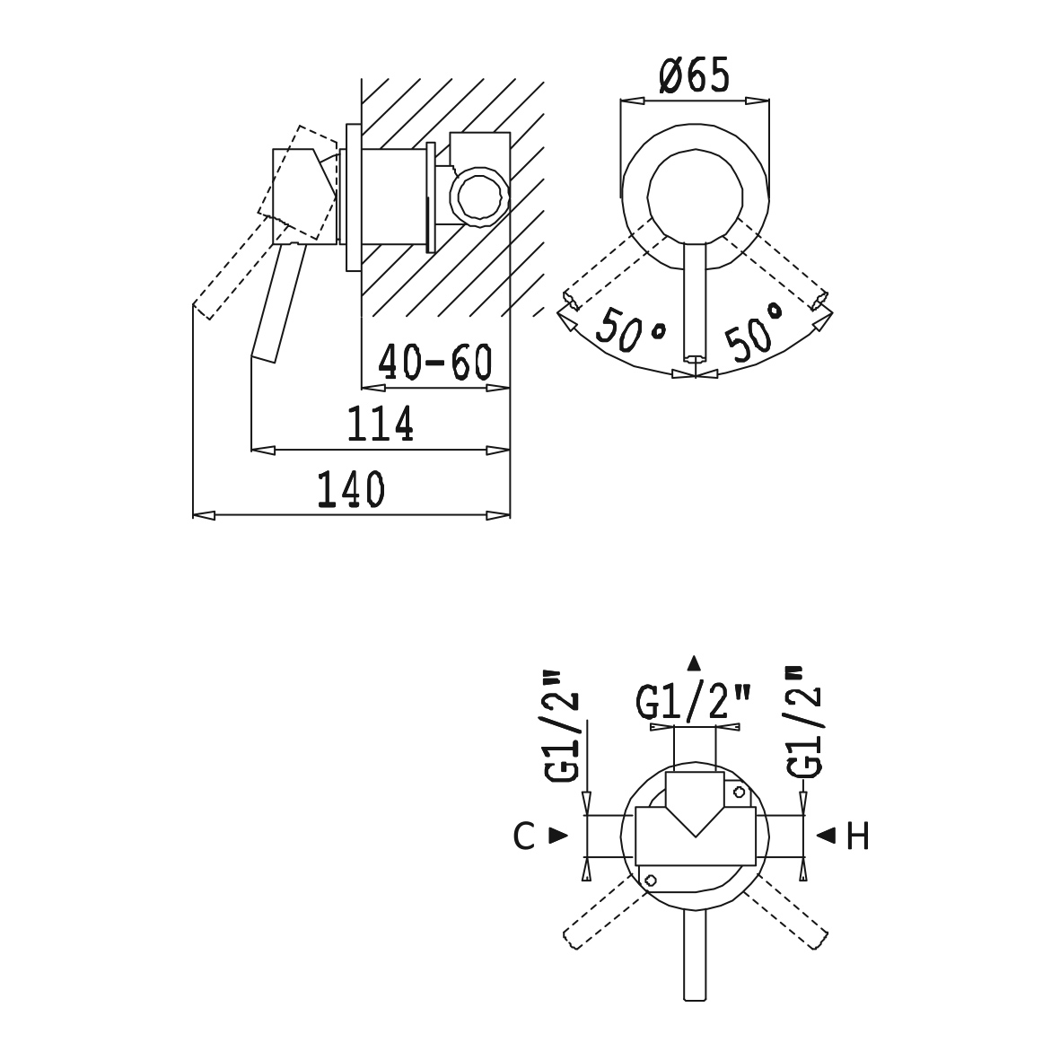 wysięg uchwytu: 140 mm