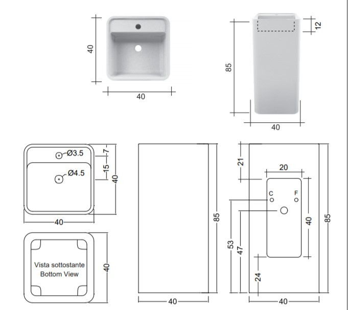 Nic Design Semplice Umywalka wolnostojąca 40x40 cm 001371.001