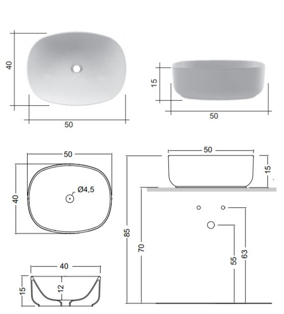 Nic Design Semplice Umywalka nablatowa 50x40 cm 001375.001