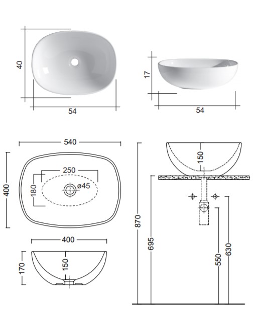 Nic Design Milk Umywalka nablatowa 54x40 cm 001285.001