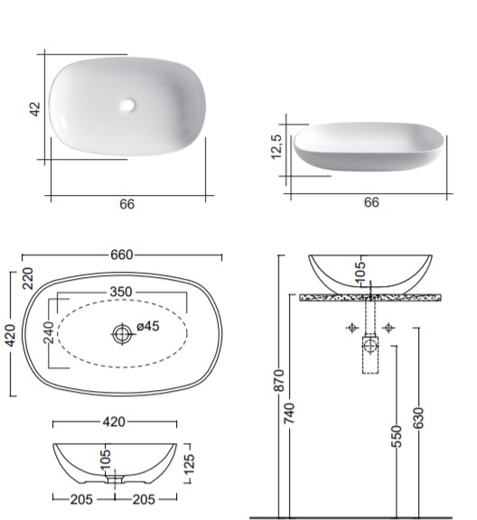Nic Design Milk Umywalka nablatowa 66x42 cm 001305.001