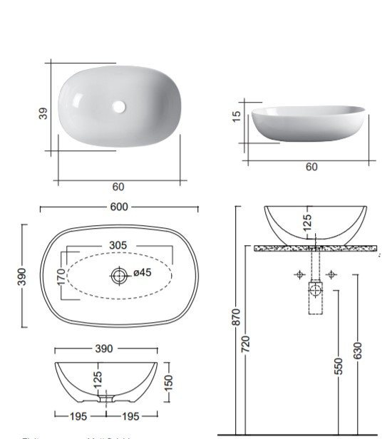 Nic Design Milk Lavabo Extreme Umywalka nablatowa 60x39 cm 001526.001