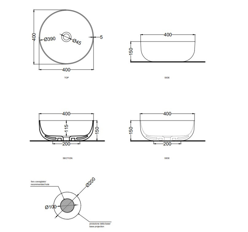 Cielo Era Umywalka stawiana na blacie okrągła ∅40 cm Oltremare BAERA40.OLKolor: Oltremare (granat)