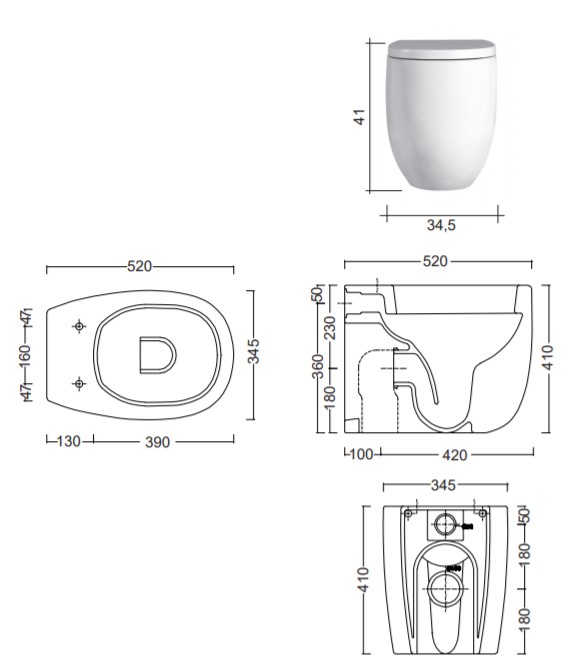 Miska w wersji bezrantowej, ułatwiającej czyszczenie.