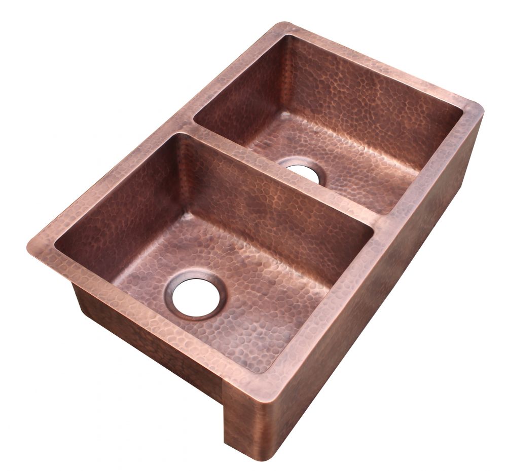 Zlew 2-komorowy Cobre miedziany lekko młotkowany 80x50 cm SLZOSIA