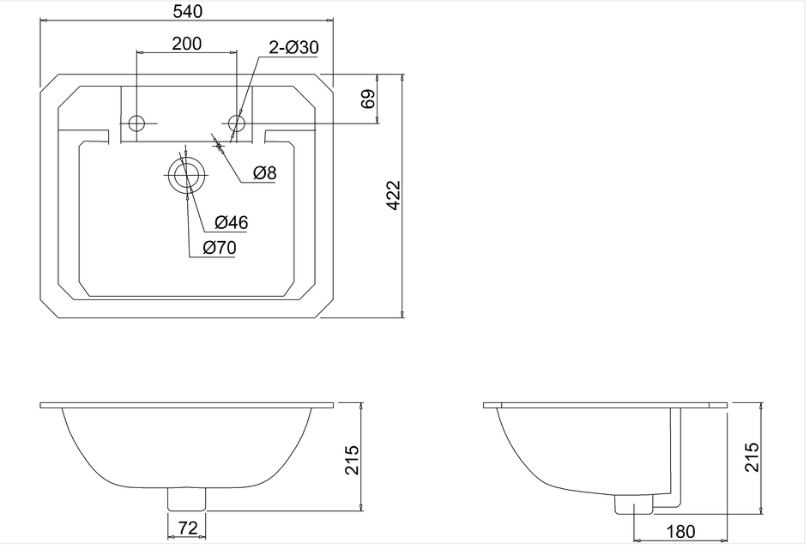 Burlington Countertop Vanity Umywalka wpuszczana w blat 54x42,2 cm dwuotworowa, Biała B132TH