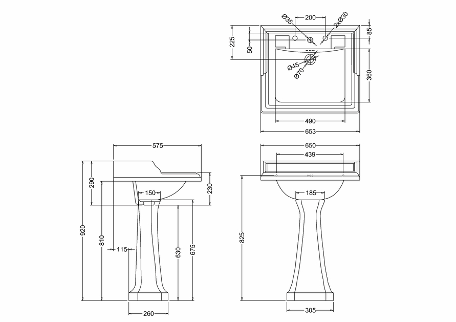Burlington Classic Umywalka ścienna 650 mm dwuotworowa, Biała B152TH