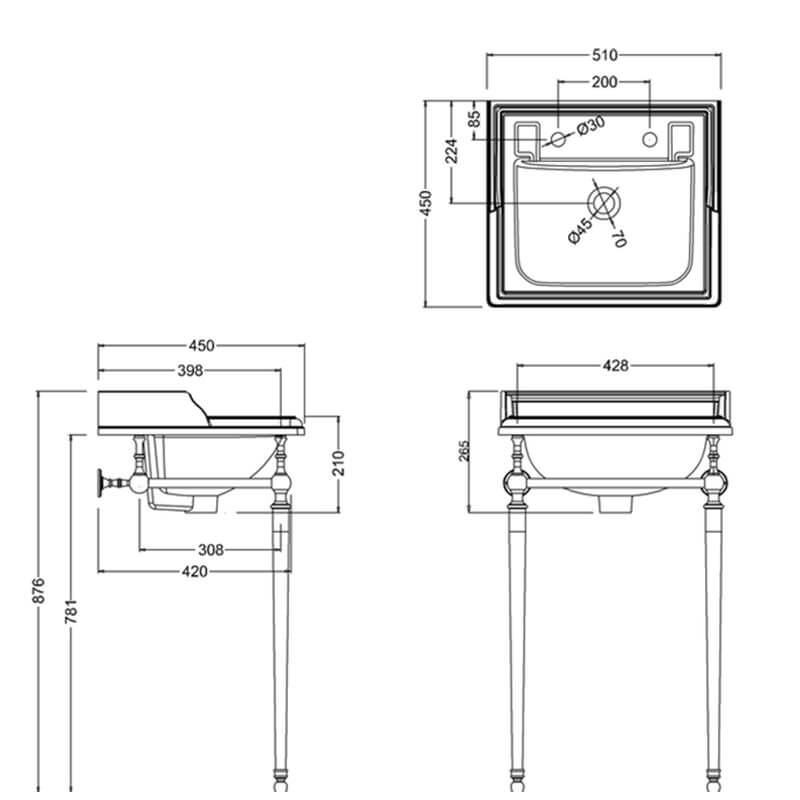 Burlington Classic Umywalka ścienna 51x45 cm 2-otworowa, Biała B202THOtwory na baterie: 2