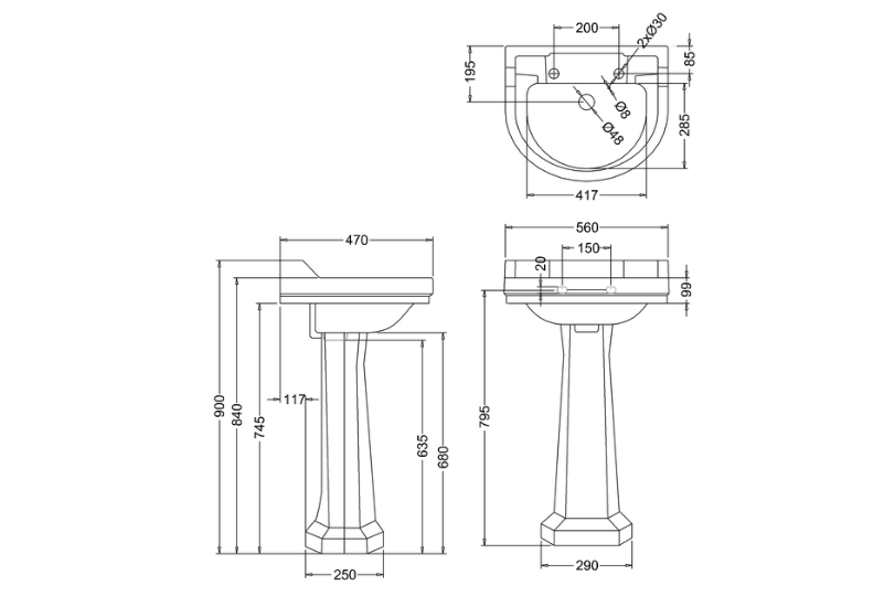 Burlington Edwardian Round Umywalka ścienna 56x47 cm 2-otworowa, Biały B62TH