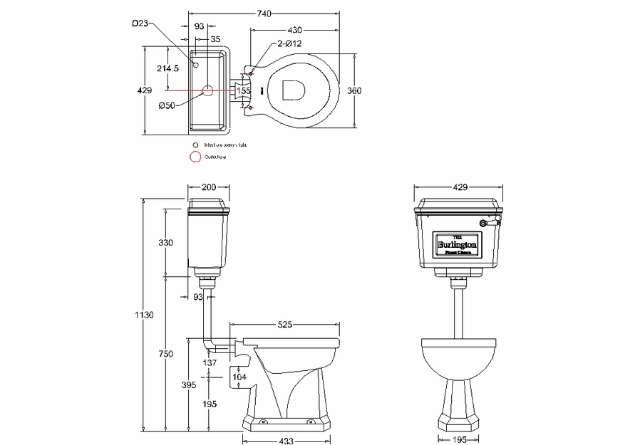 Burlington Spłuczka aluminiowa z rączką 42,9cm, Chrom T71CHR