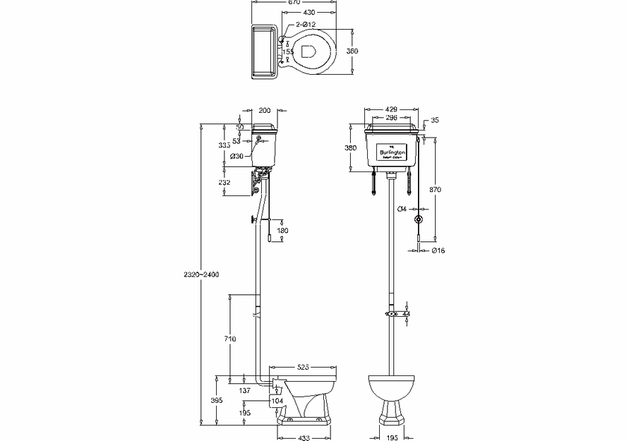 Burlington Spłuczka górnopłuk 43cm, Chrom Aluminium T70CHR