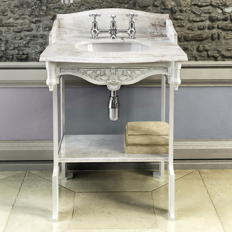 Burlington Blat 65 cm z umywalką podblatową 38 cm z 1 otworem na baterię Marmur Carrara G11TH