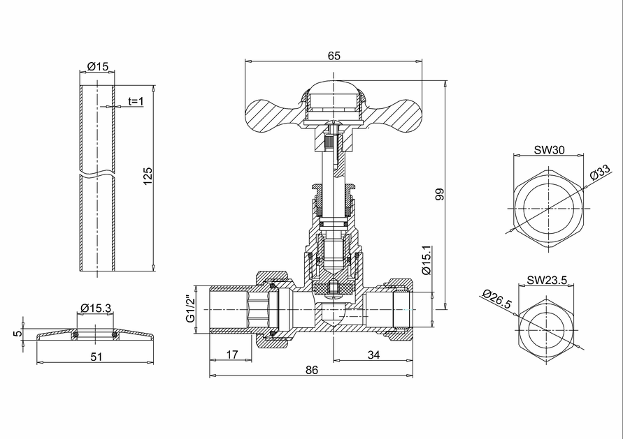 Burlington Zawory do grzejnika Nikiel R6NKL