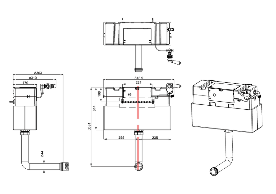 Spłuczka do zabudowy z rączką ceramiczną w komplecie