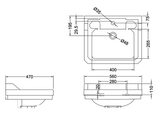 Umywalka może mieć 2 lub 3 otwory na baterię (trzeba zaznaczyć przy zamówieniu)
