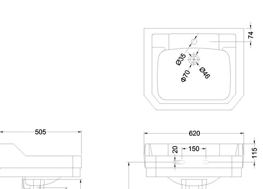 Umywalka może mieć 2 lub 3 otwory na baterię (trzeba zaznaczyć przy zamówieniu)