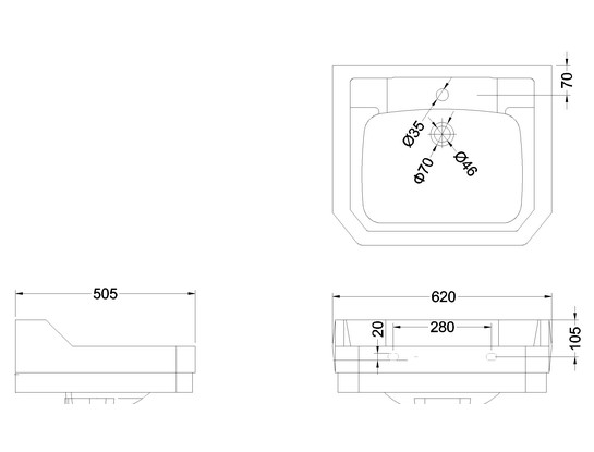 Umywalka może mieć 2 lub 3 otwory na baterię (trzeba zaznaczyć przy zamówieniu)