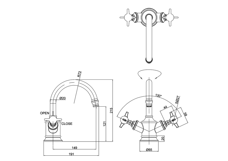 Arcade Bateria umywalkowa z dwoma pokrętłami Chrom ARC 2014 CHR
