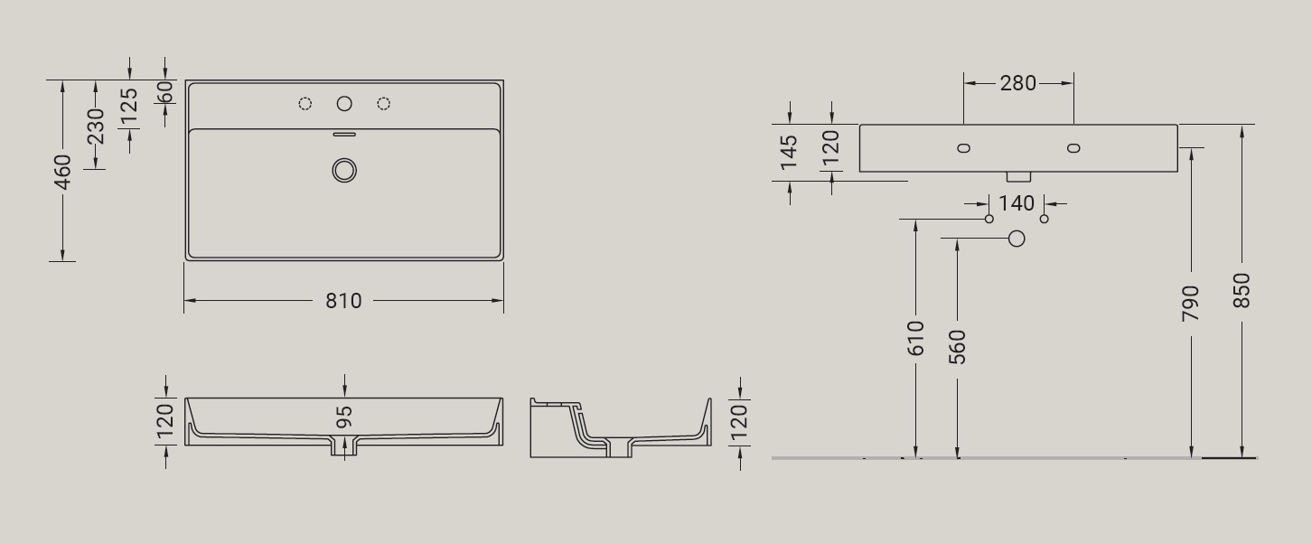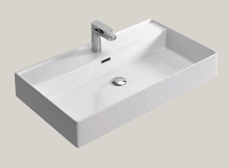 Hidra Faster Kiub Umywalka ścienna 81x46 cm Biała KI80.001z jednym otworem pod baterię (z możliwością wycięcia trzech otworów)
