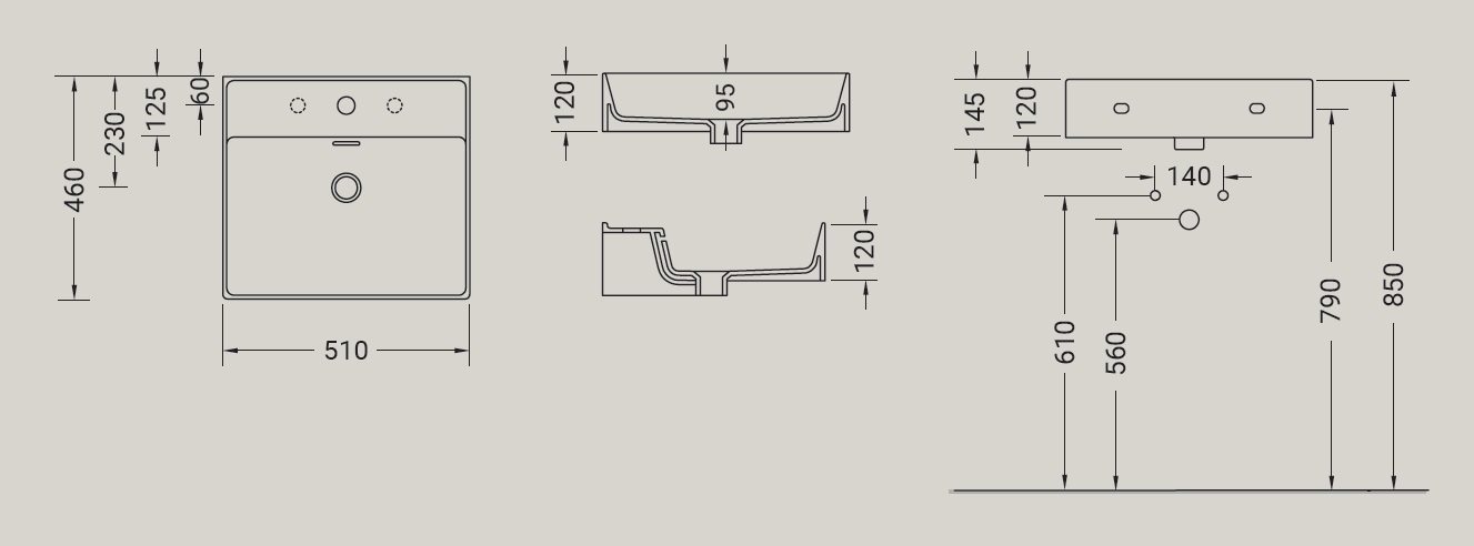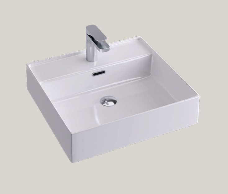 Hidra Faster Kiub Umywalka ścienna 51x46 cm Biała KI50.001z jednym otworem pod baterię (z możliwością wycięcia trzech otworów)