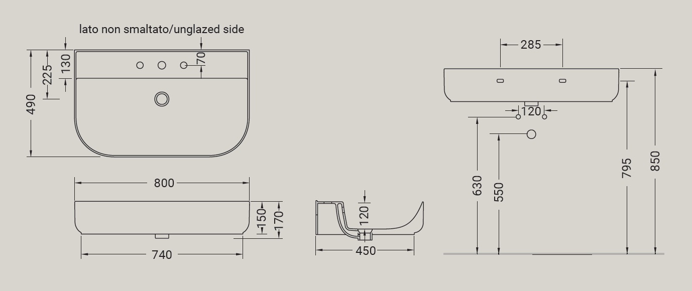 Hidra Gio Evolution Umywalka ścienna 80x49 cm Biały G17E.001z otworem przelewowym