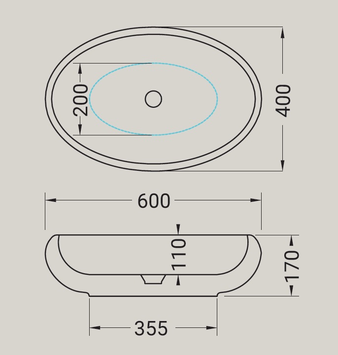 Wymiary: szerokość: 600 mm długość: 400 mm wysokość: 170 mm
