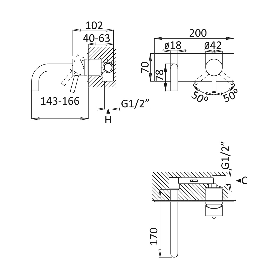 długość wylewki: 170 mm