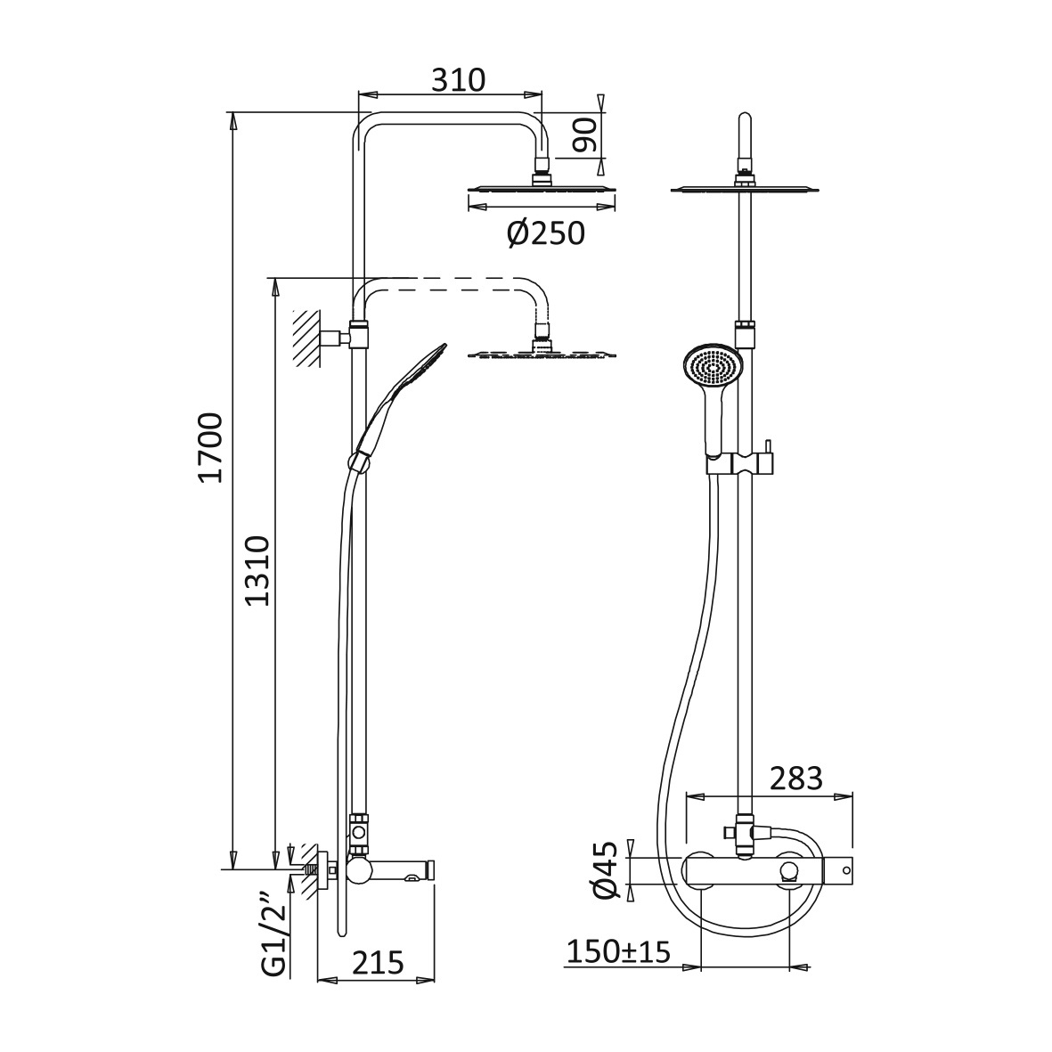 Bruma Lusitano Zestaw wannowy z regulowanym ramieniem, prysznicem i deszczownica Ø250 mm Sunrise 1072607SR