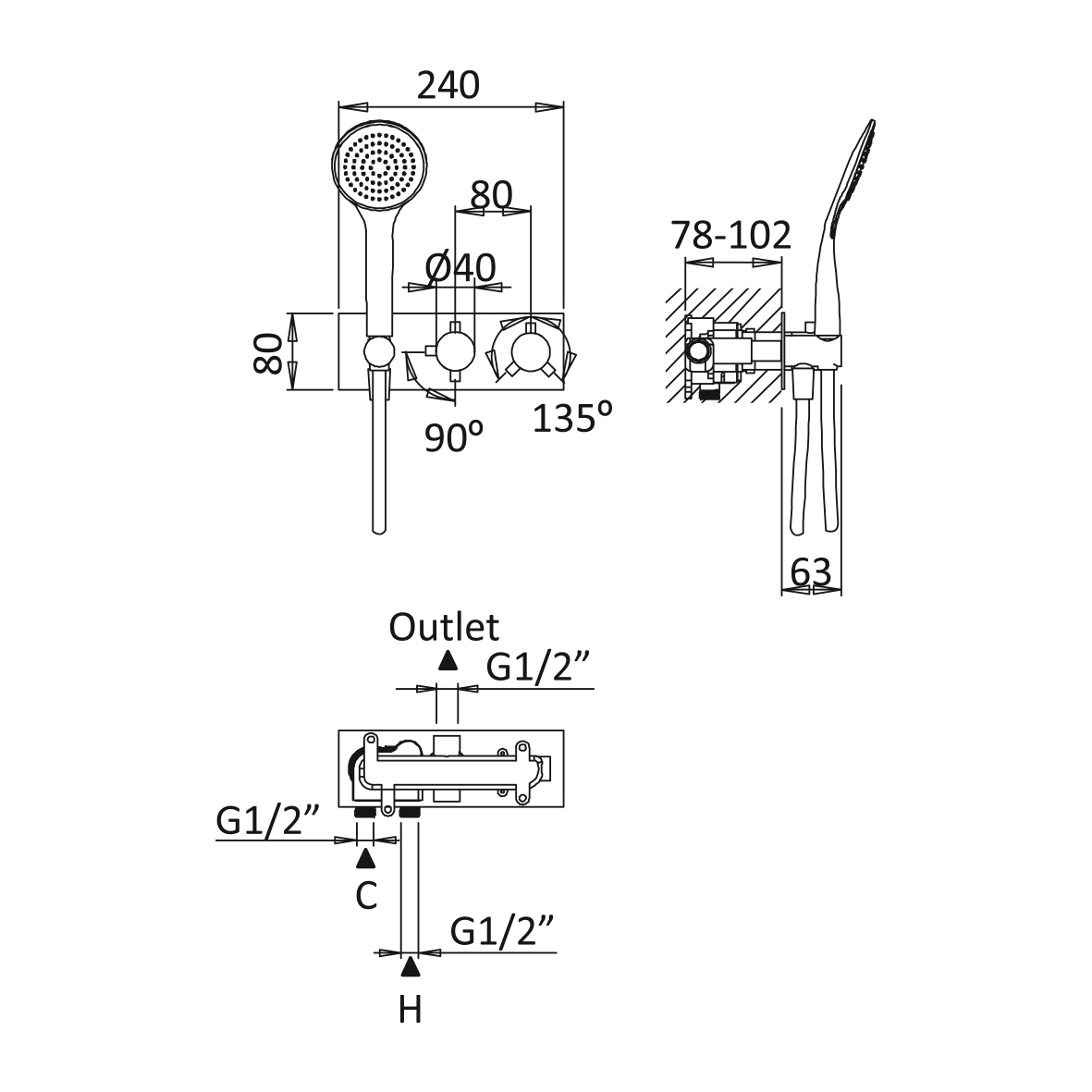wysięg uchwytu ba słuchawkę: 63 mm