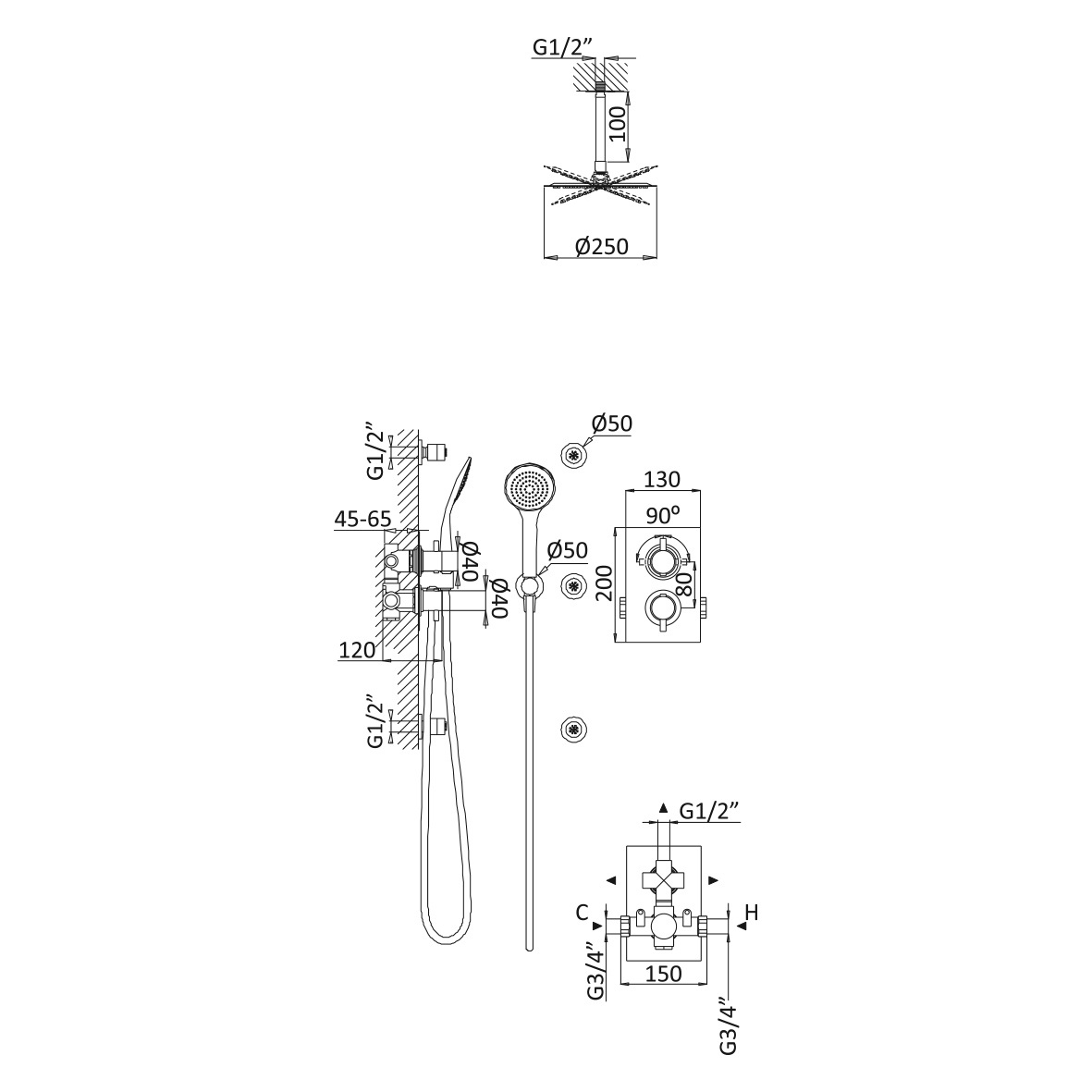 średnica deszczownicy: 250 mm