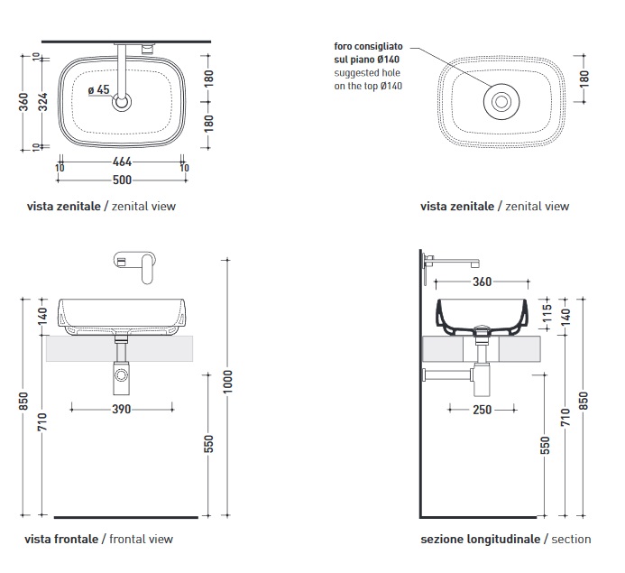 Flaminia Flag Umywalka nablatowa 50x36 cm Argilla FG50AARG