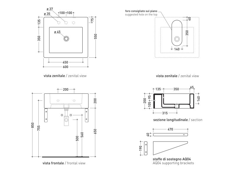 Flaminia Acquagrande Umywalka stawiana na blat lub ścienna 60x56 cm Nero 5052NER