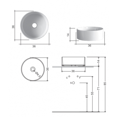 NIC Design Ovvio Umywalka nablatowa Ø36 cm Tondo Biały 001448.001