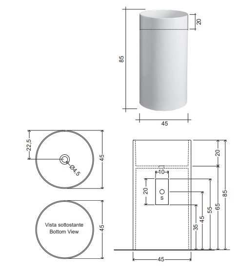 NIC Design Ovvio Umywalka wolnostojąca Ø45 cm Biały 001455.001